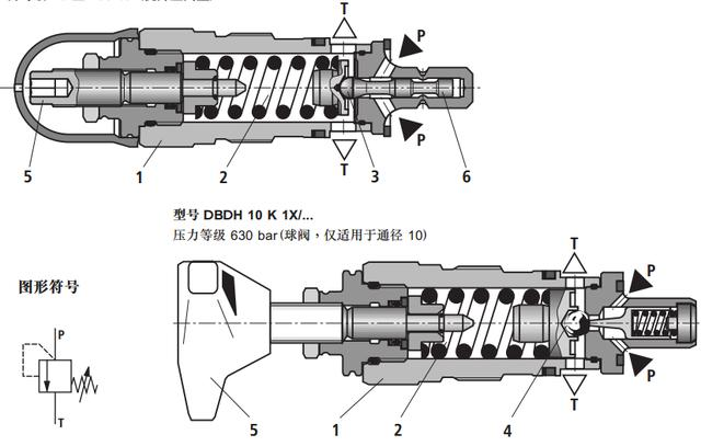 下圖為溢流閥的剖面圖,原理與上圖相同。