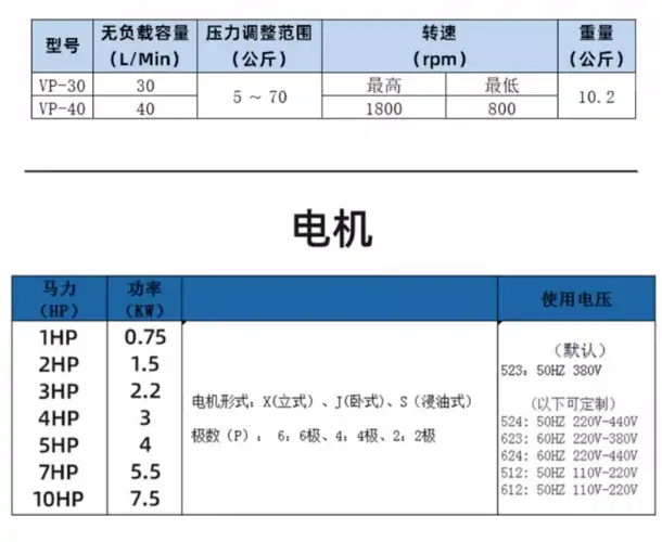 3.75KW+VP30 3.75KW+VP40 4KW+VP40 4KW+VP30 3KW+VP30