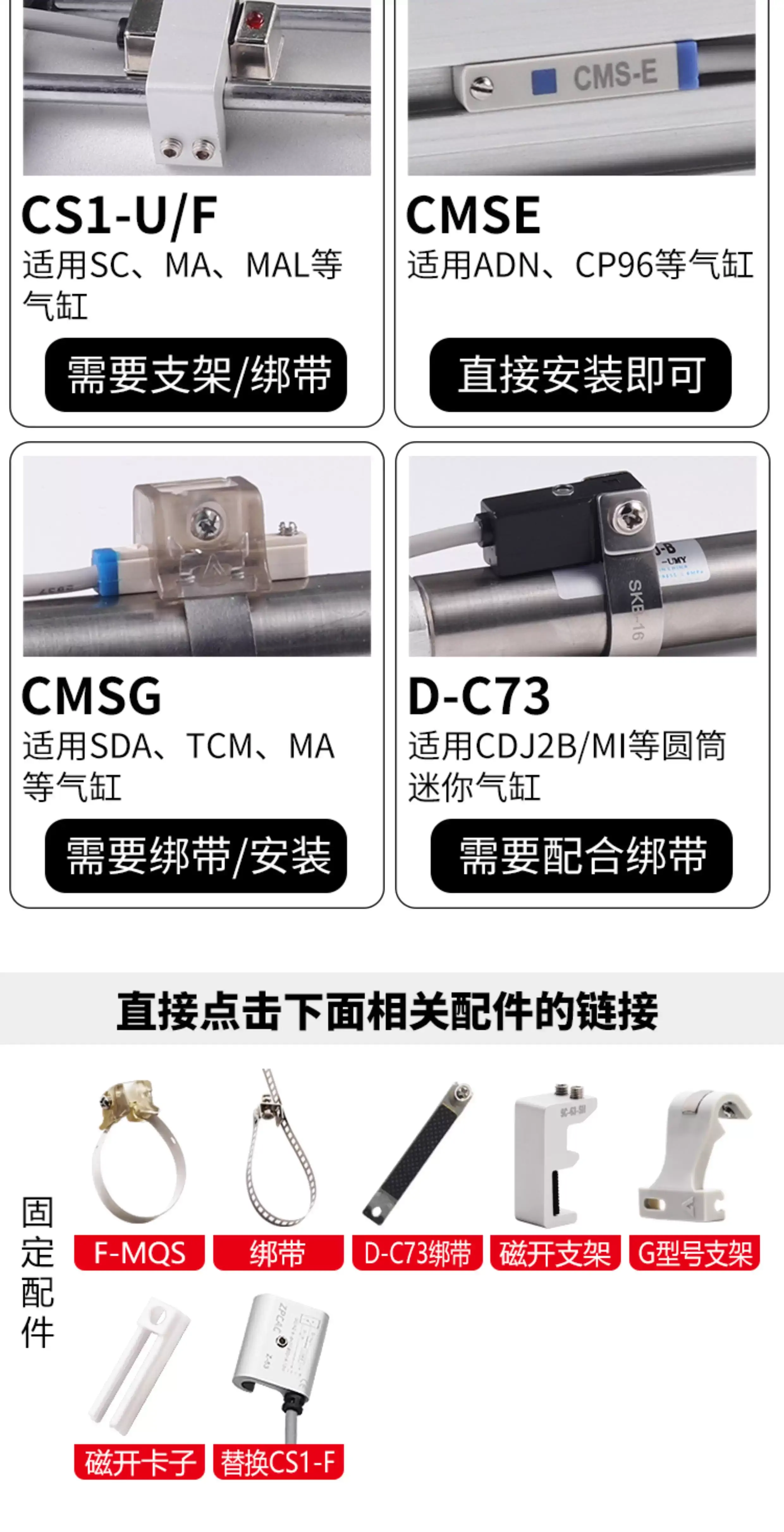 JEND圓形氣缸磁性開關DS1/CS1-F-U磁開帶綁帶M-S10/12/16/20/25/32/40