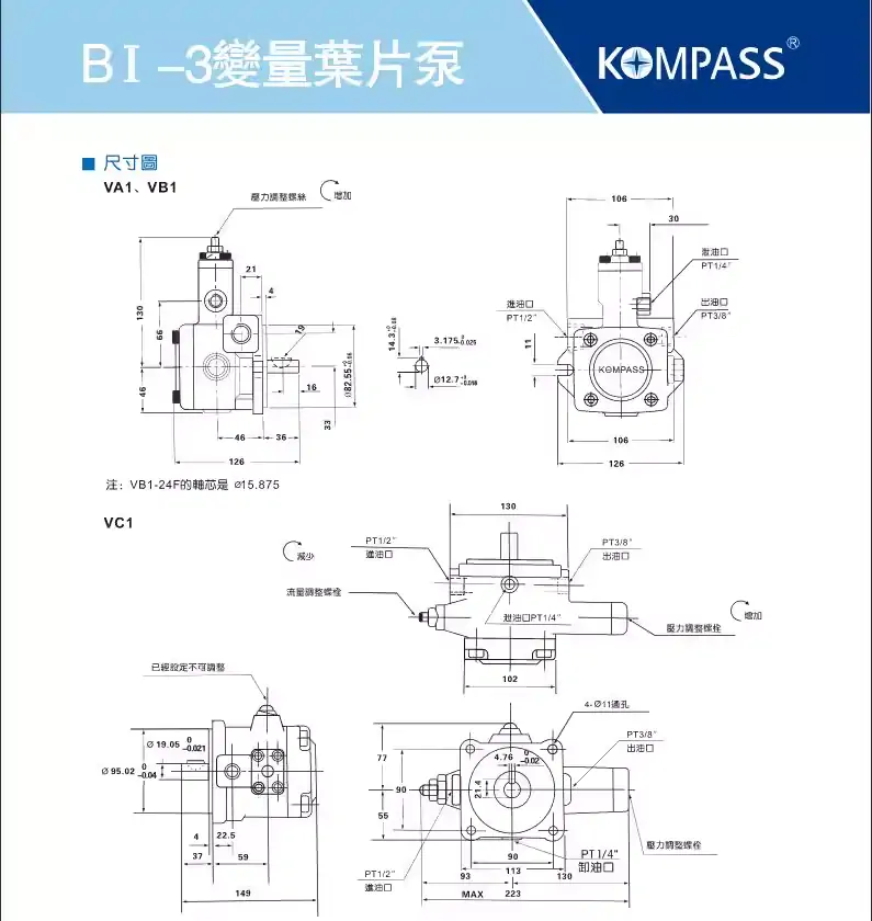 KOMPASS康百世機床液壓油泵VD1D1-3030F-A3雙聯變量泵 液壓油泵