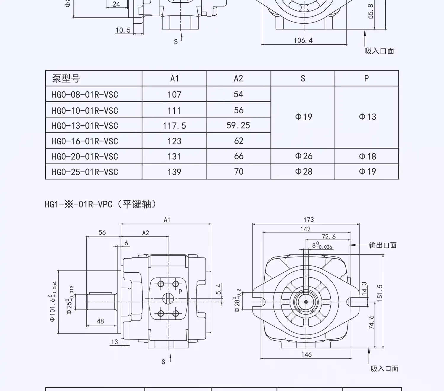 - 后泵(PV2R2):排量:26~65 mL/r(依型號后綴)額定壓力:21 MPa (210 bar)