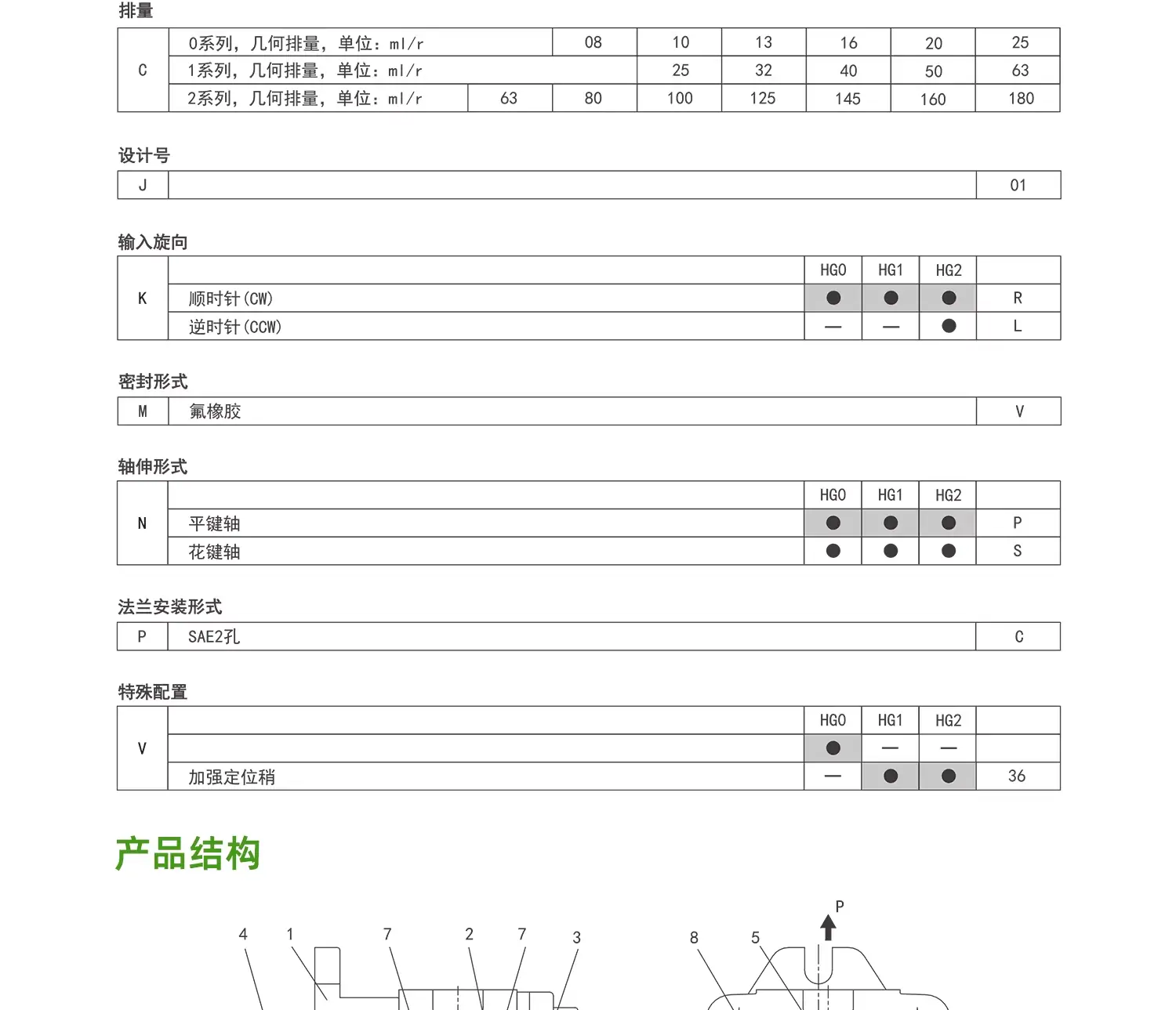 - 由泵體、前后端蓋、主動齒輪、內齒圈、月牙隔板、滑動軸承、軸向壓力補償側板、密封組件等構成。